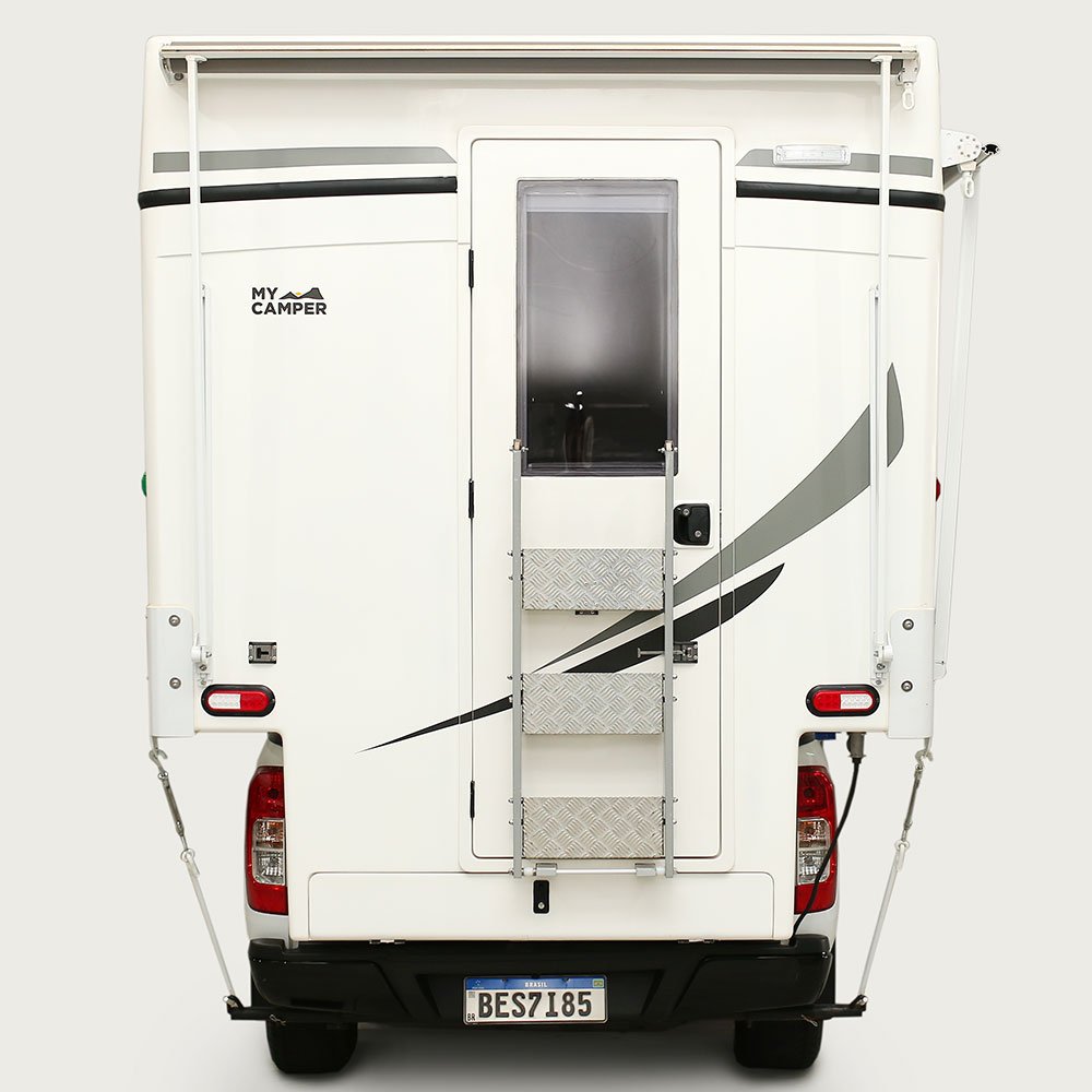 Já o layout externo do produto resgata a tradição das linhas e grafismos clássicos dos trailers, ao mesmo tempo em que reforça a identidade da marca: liberdade com conforto e personalidade — uma camper de visual marcante, feita para quem quer viver mais experiências sem abrir mão da praticidade.